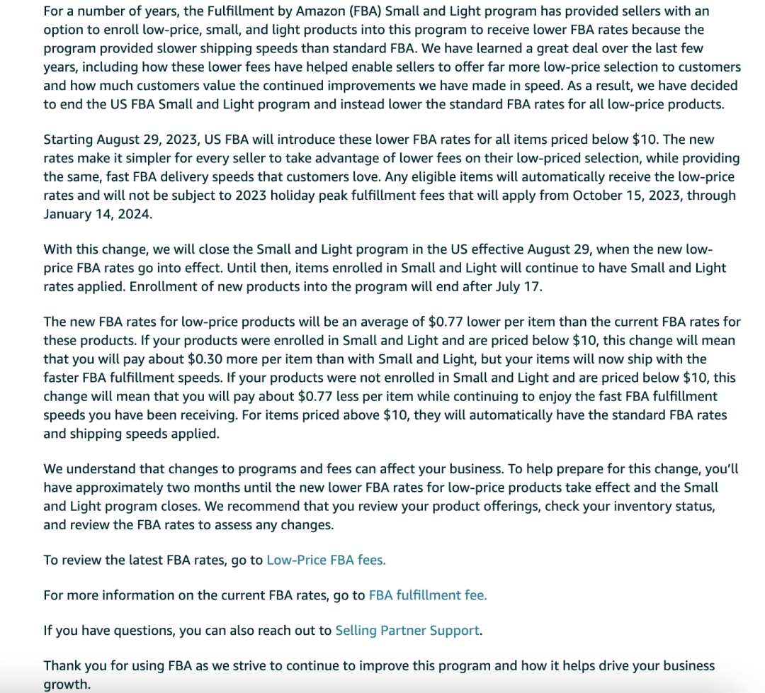 ·2、2023年8月29日起,亚马逊正式关闭轻小商品计划,将实行新的低价FBA利率。在此之前,报名轻小型商品计划的项目将继续适用。