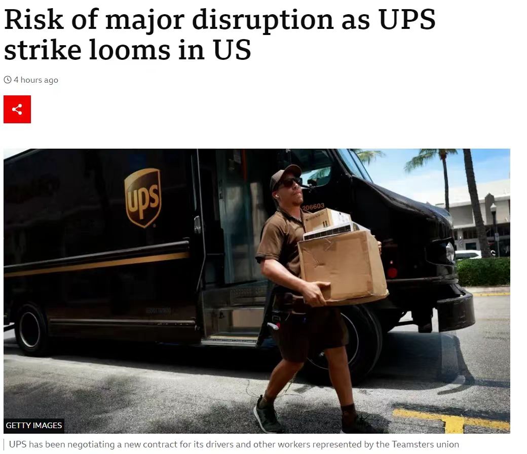 近日,据报道,随着UPS和代表该公司卡车司机协会Teamsters之间的合同谈判破裂,八月份可能会爆发罢工。一场严重罢工威胁正变得越来越大。