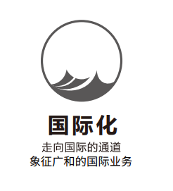 国际化:标志中以海洋和地球元素增强广和国际业务的属性,同时外圆也寓意着广和国际团结和谐,处事圆满周全, 与客户、合作伙伴紧密合作,共创未来。