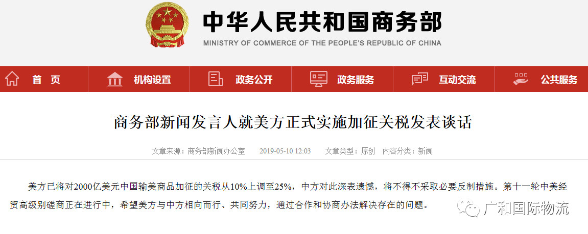 5月10号,商务部已正式发文: