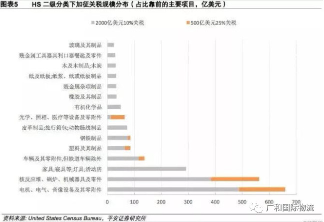 价值2000亿美元的商品清单涉及6031项产品,占据了中国2017年向美国出口总额的38%-46%。具体涉及那些类目产品呢?
