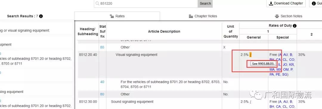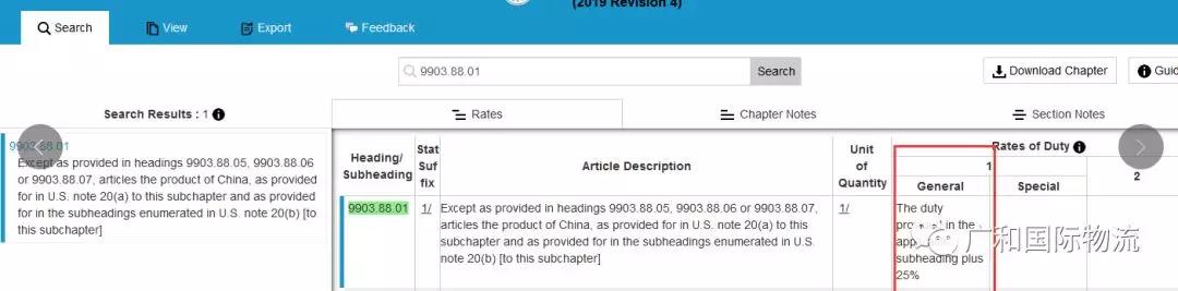 如上图,请注意你的“General”中2.5%后面有没有带上一个小小的“/”,我们把鼠标放在上面,就会显示让我们再去查看“9903.88.01”这个副标题。