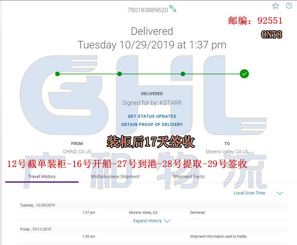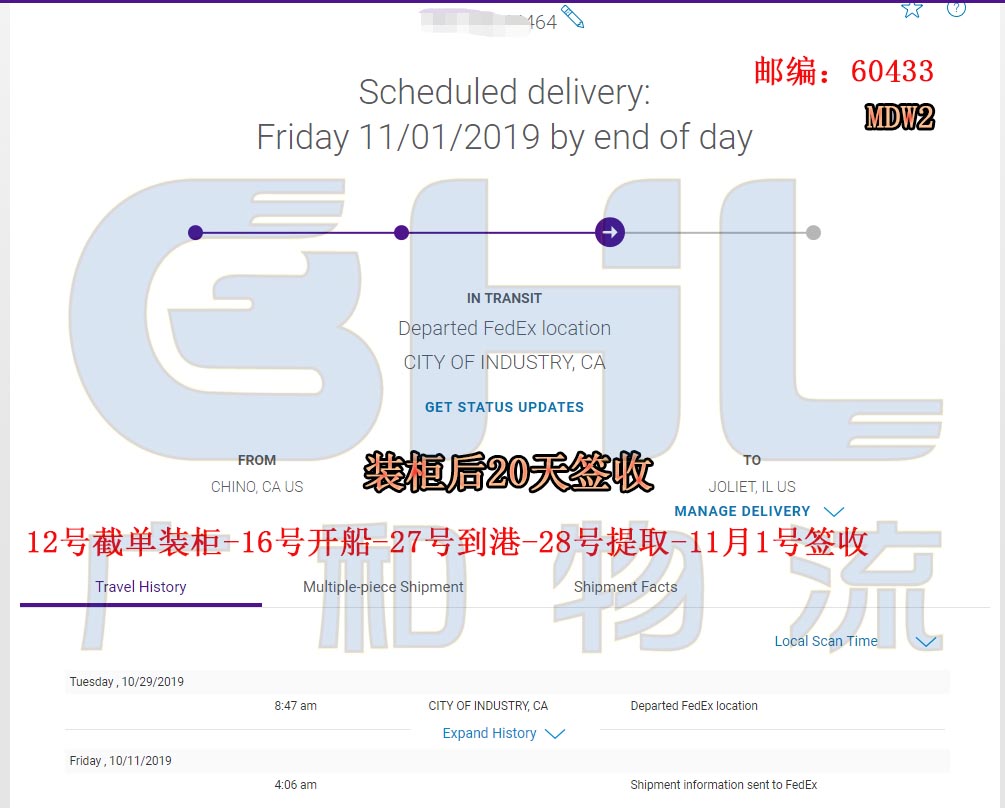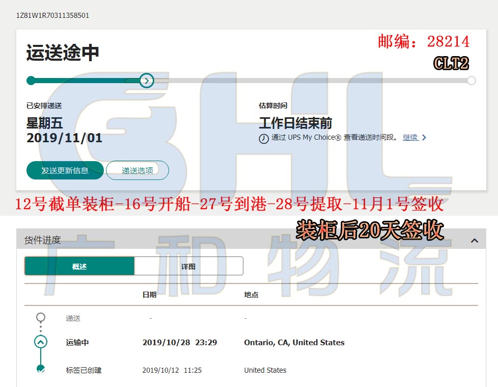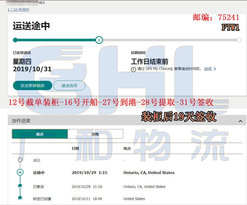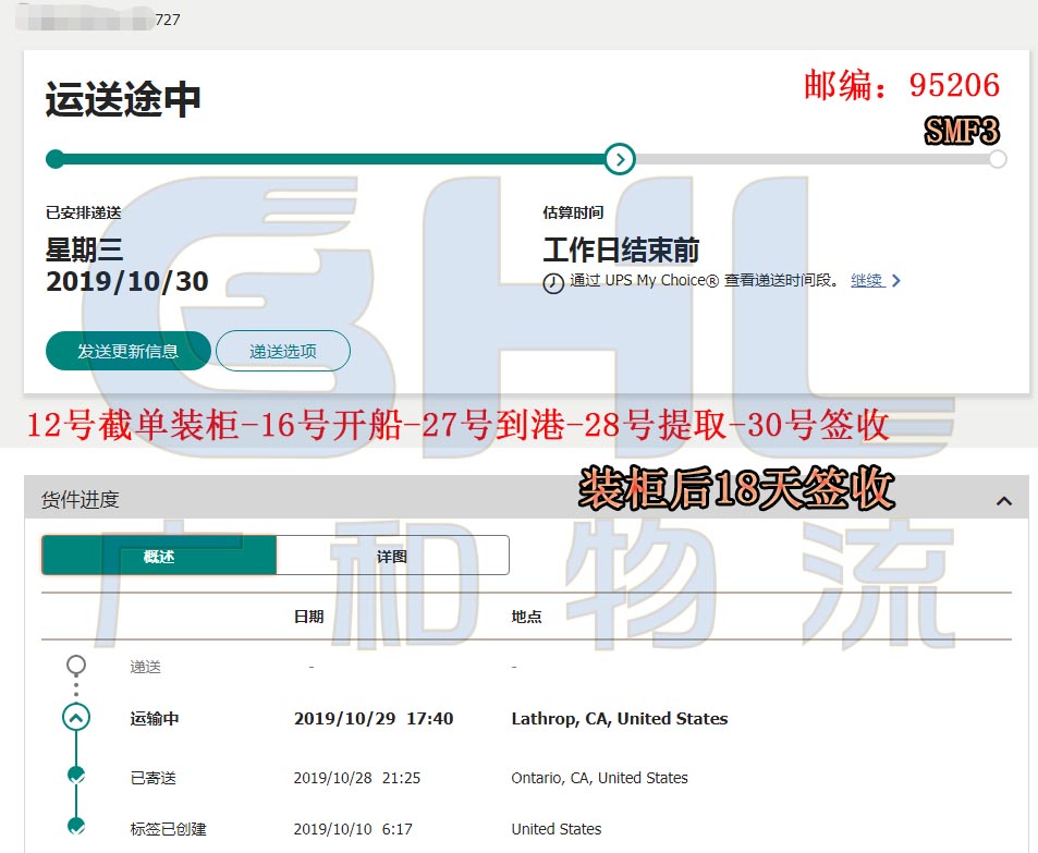 广和物流国庆节后美森快船第一水已提取签收