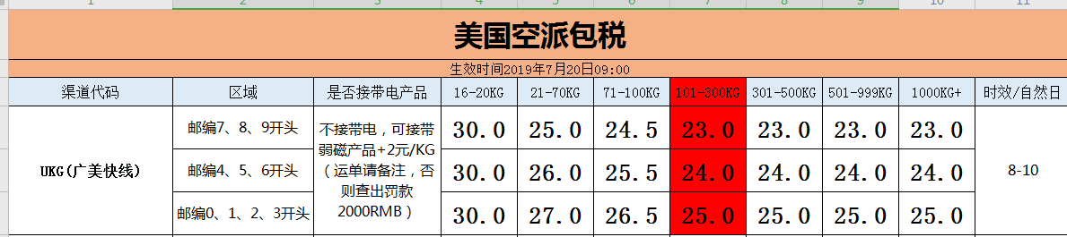 受航空管制及征税影响,下周空派整体将上调,广和物流最后一班原价收货!下周二加板直飞la,当天交ups,美西最快周三签收!只需23元/KG、24元/KG、25元/KG,今天截单,欢迎垂询!时效参加下图!