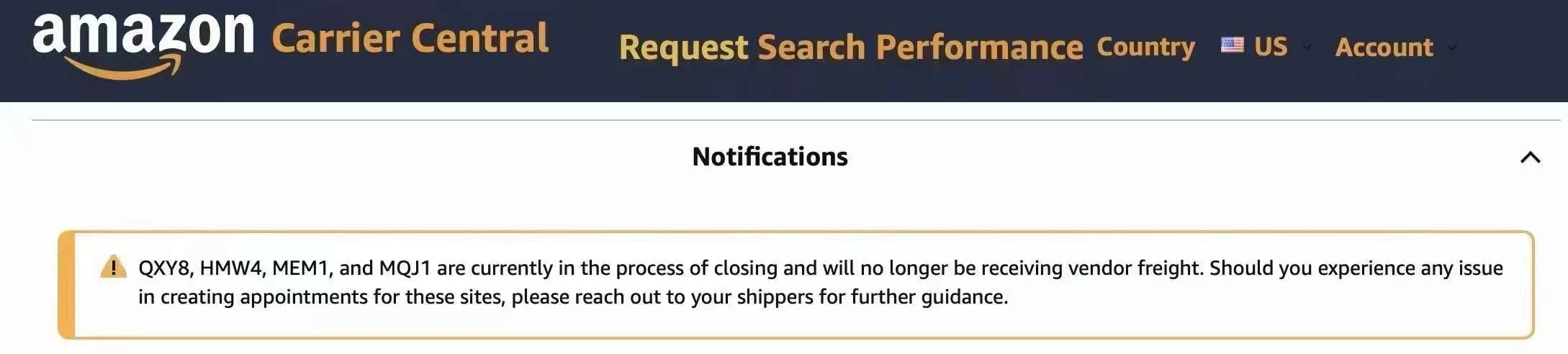 亚马逊关仓通知